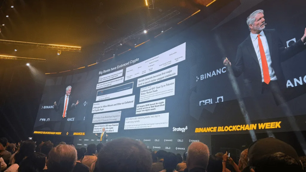 Michael Saylor really got the crowd going at Binance Blockchain Week in Dubai, boldly announcing that Bitcoin has officially entered its “digital capital era.” He explained this is happening because of support from politicians in the U.S., a surge in big companies getting involved, and a worldwide move towards money that’s digital from the start.